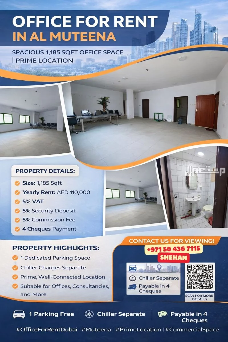 #OfficeDubai #Muteena #CommercialRent #BusinessSpace