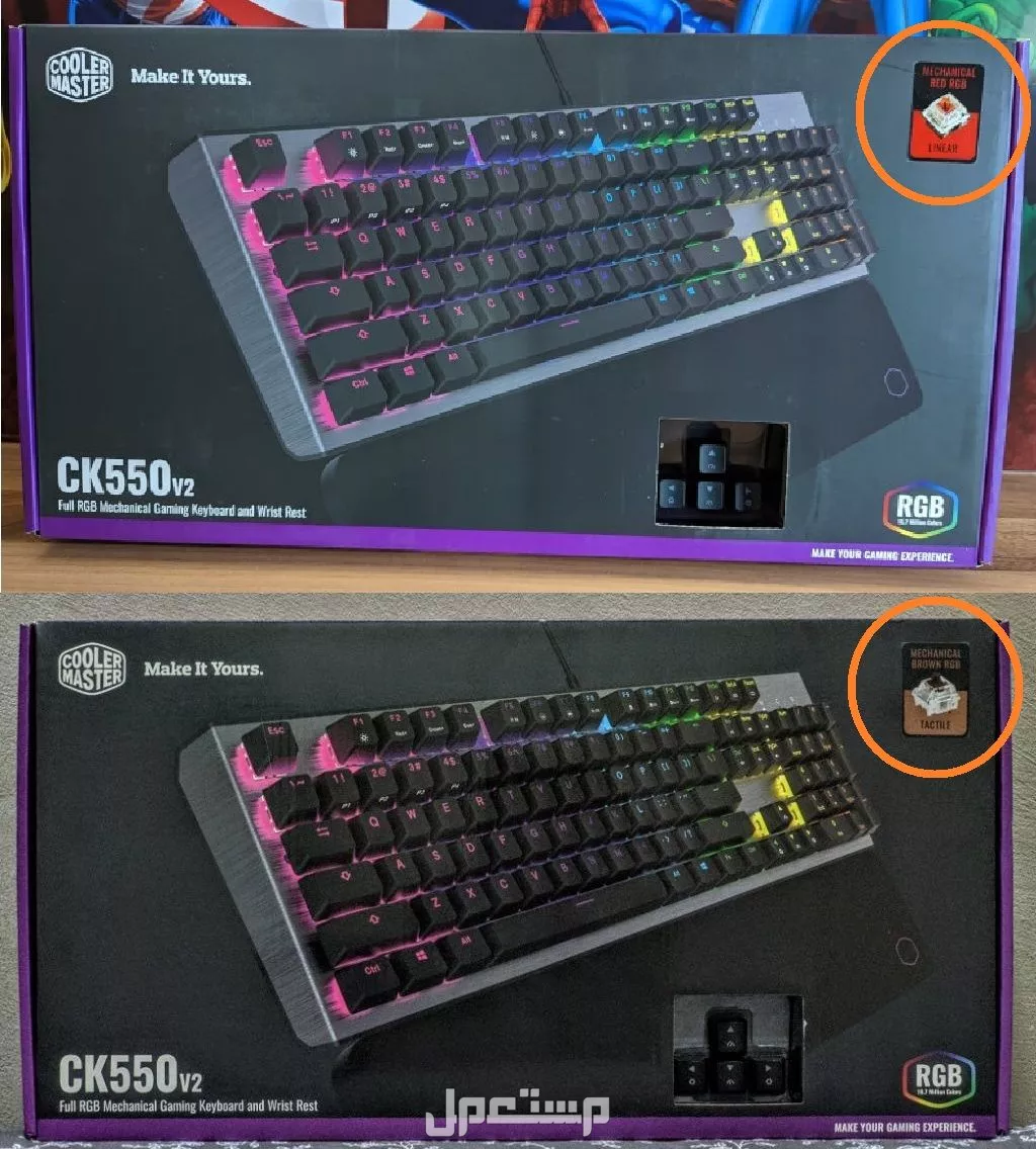 Cooler Master Keyboard CK550 V2 RGB Gaming Mechanical brown or red Switch USB2 Wrist Rest Standard size جديد متبرشم ضمان محلى