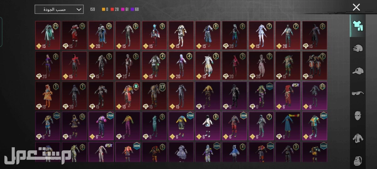 حساب ببجي موبايل مره جميل بيه 19 سلاح بيطور و 49 ميثك و بيه 2 كونكر و مشحون فيه 11 سيزون و به الأمور الثلجي lv5 والامسيفن الازرق كيل واليومب كل والديبياس كل ويوجد 9 اسلحه بتطور لسيت سيزونات
