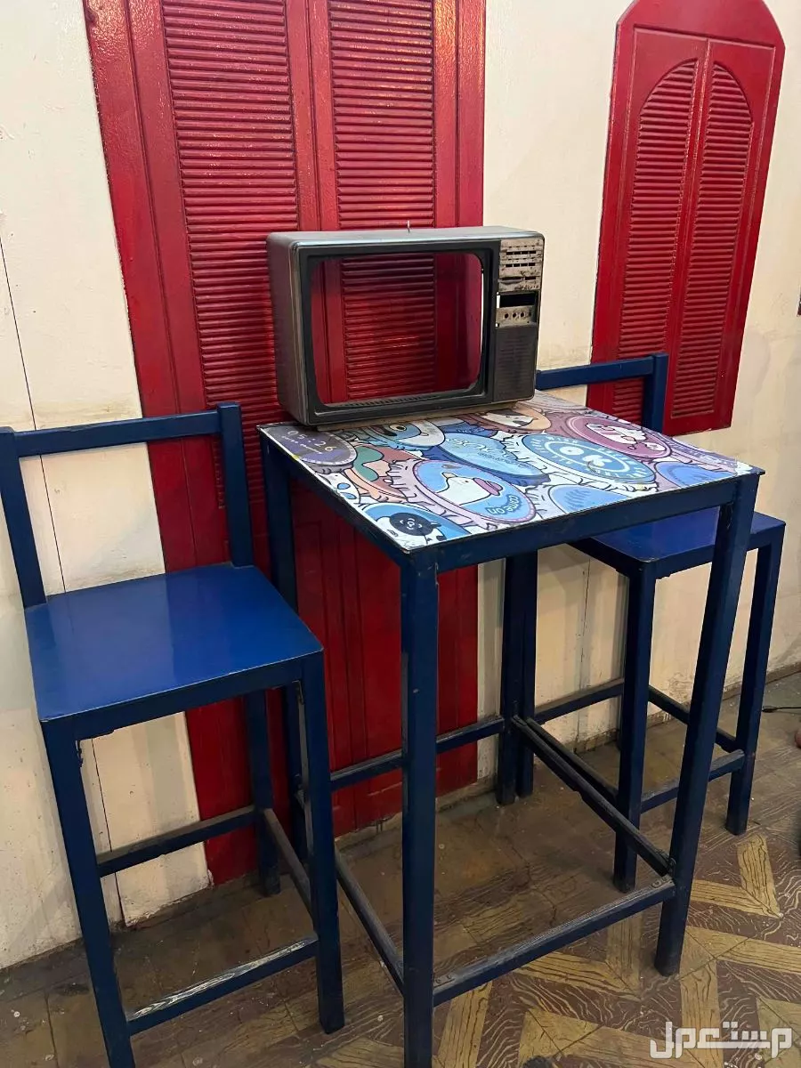عدد 2 كرسي خشبي بار ملون مع تربيزه خشبيه ملونه ب 1200 جنيه مصري بحاله جيده جدا بشبرا مصر محطة مترو مسره
