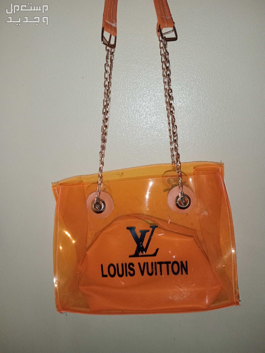 شنطه اورنج شفاف بداخلها محفظه نفس اللون تنفع للبحر او خروج