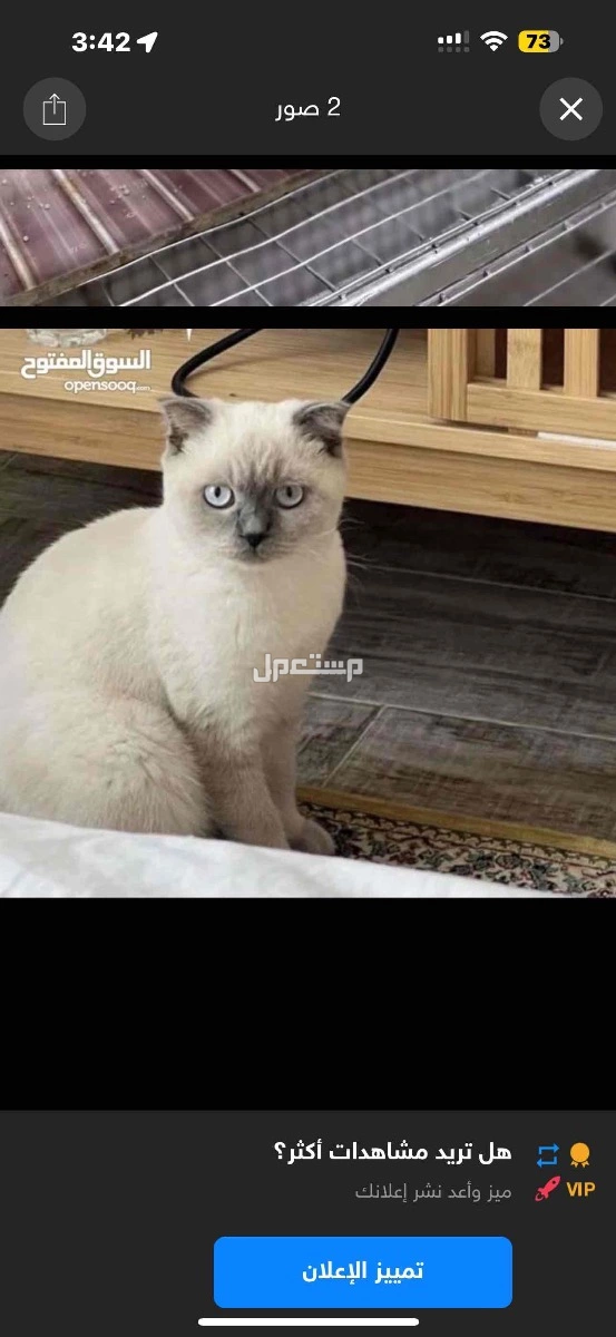 للبيع قطه نوع سكوتش انثى العمر 5 شهور مطعنه اموره طيله السعر 70 ريال الون ابيض على شوي اسود ندر هذا الون تحصل الي شاري جاد يتواصل خاص على رقم 95899173