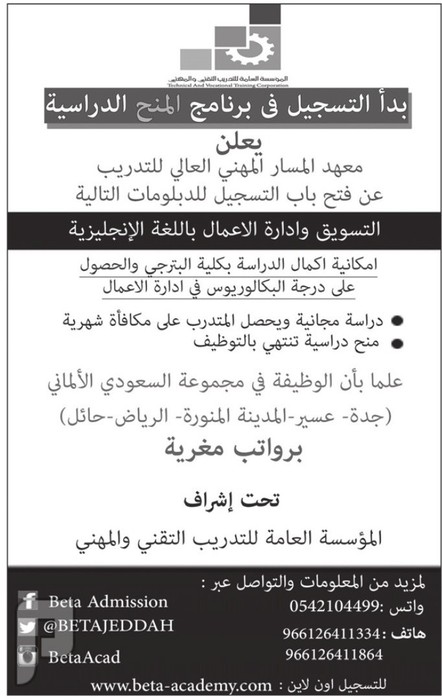 برنامج منح دراسية معهد المسار المهني العالي للتدريب