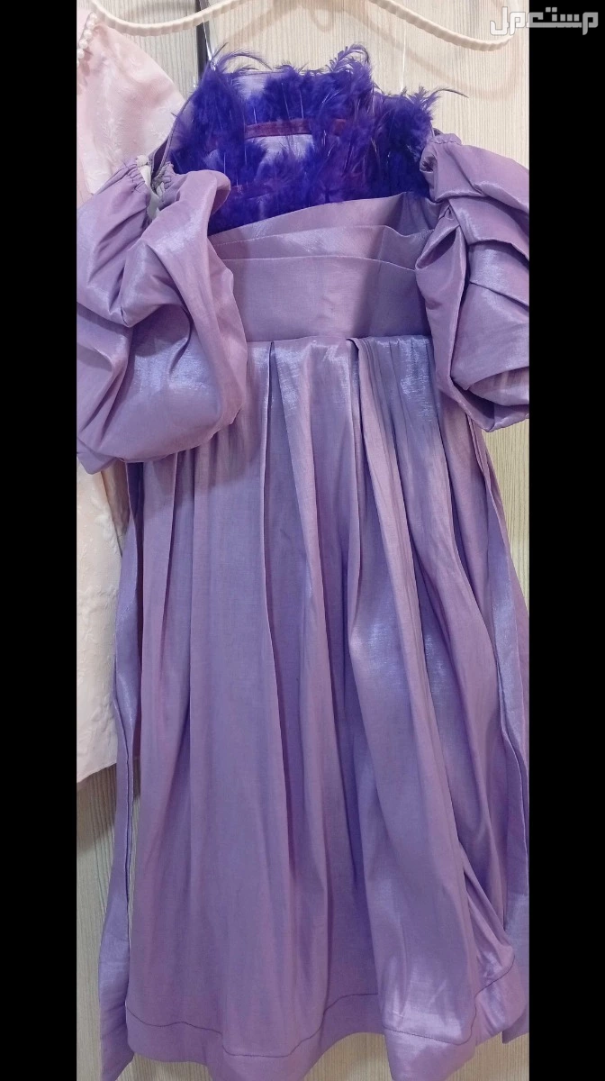 للبيع فستان بناتي لون البنفسجي أكمام منفوخه وفيه ريش على الصدر الفستان جديد لبسته 4 ساعات فقط يناسب عمر 7 أو 8 سنوات