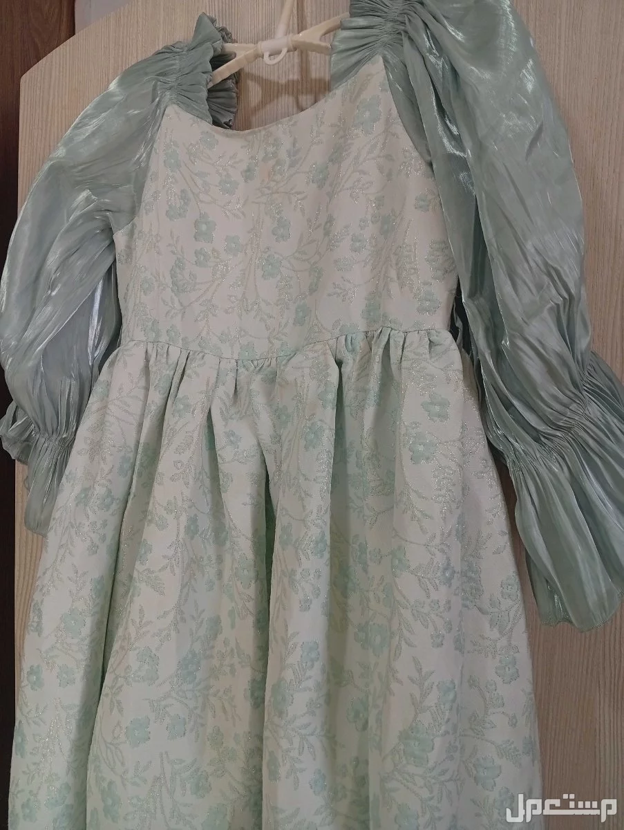 يوجد لدي فستان اللون تيفاني الأكمام منفوخه ساتان الخامه جاكار جديد خالي من العيوب يناسب عمر 8 أو تسع سنوات