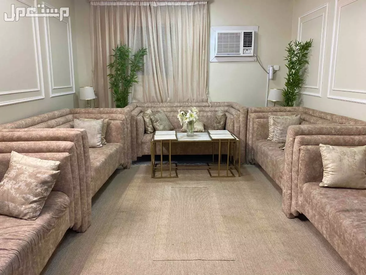 كنب العدد 5 لون بيج الطاوله لونها ابيض بذهبي و أربع خدمات والستارة طقم الكنب نفس ألون للتواصل عبر الرقم واتساب :0568010258
