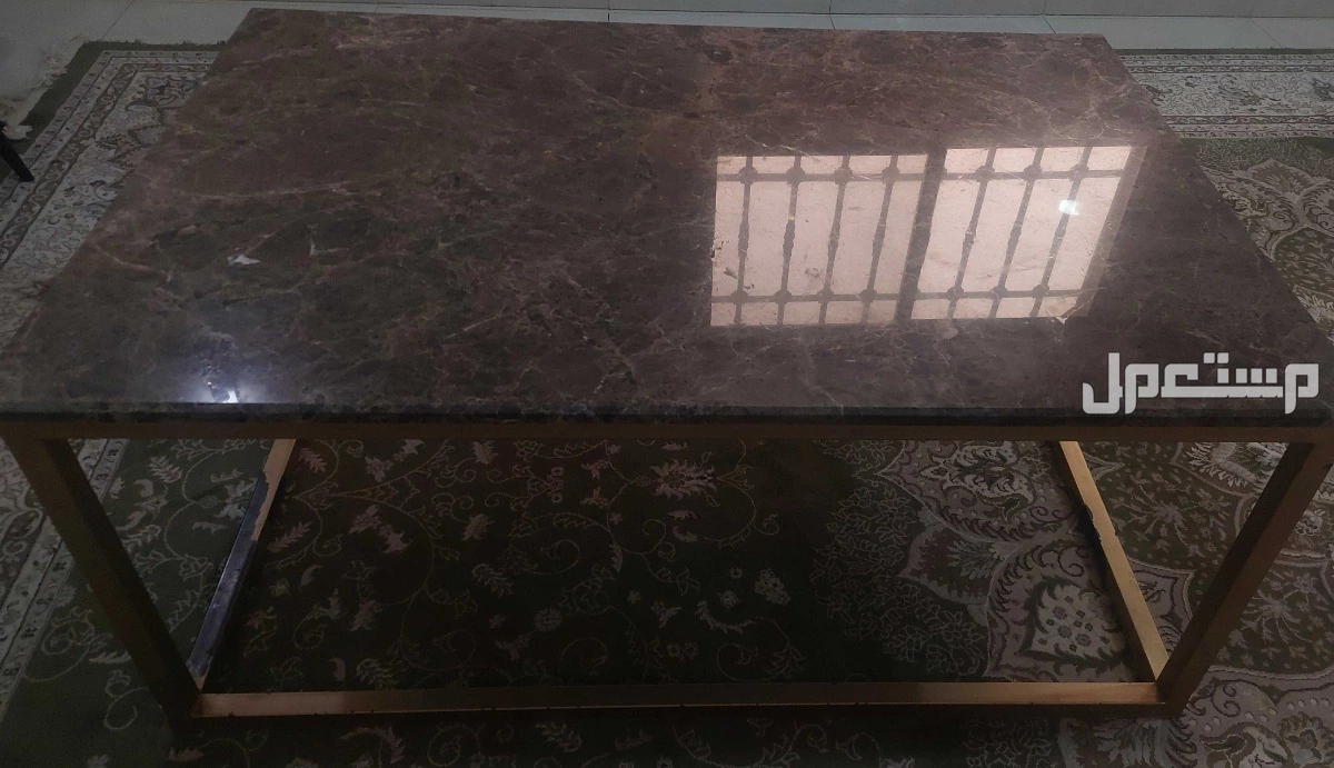 طاولة ضيوف رخام فخمة، الرخامة ممتازة ونظيفة وكأنها جديدة، ثقيلة وثابتة. الأطراف الذهبية فيها تقشير خفيف بسيط، مقاس الطاولة 122 × 82.5 سم، مناسبة للمجالس وغرف المعيشة. سعر الشراء كان ب1300 ريال، فرصة ممتازة للي يعرف قيمة الرخام.
