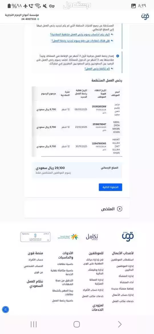تخفيض مقابل مالي من9700ريال إلى 100ريال للموسسات لو عندك 1000عامل ع ملف واحد نسويها لك 100ريال بدون فتح فروع الأنجاز فوري مضمون رقمي تواصل واتس 👇