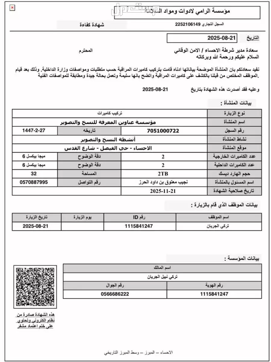 • الكاميرات دقتها عالية جداً وممتازة للمحلات، البيوت، والمزارع.