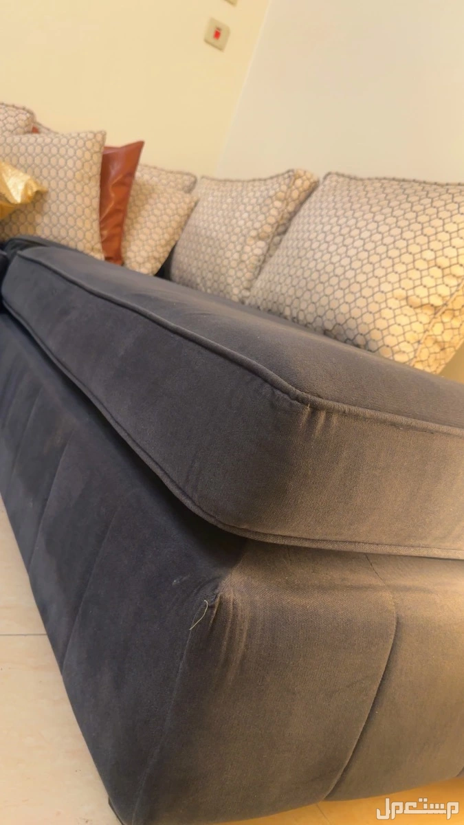 كنب شكلL باللون الرمادي الغامق،، بحاله ممتازه ونضيف جداً