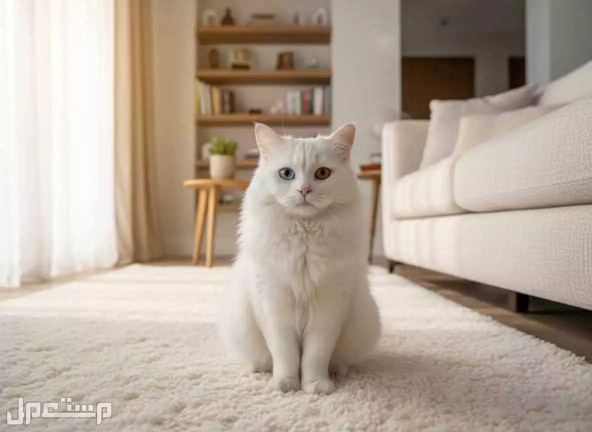 عرض خاص لمحبي التميز والقطط النادرة. قط شيرازي (Persian) بيور، يتميز بلون أبيض ثلجي وفراء كثيف وناعم.