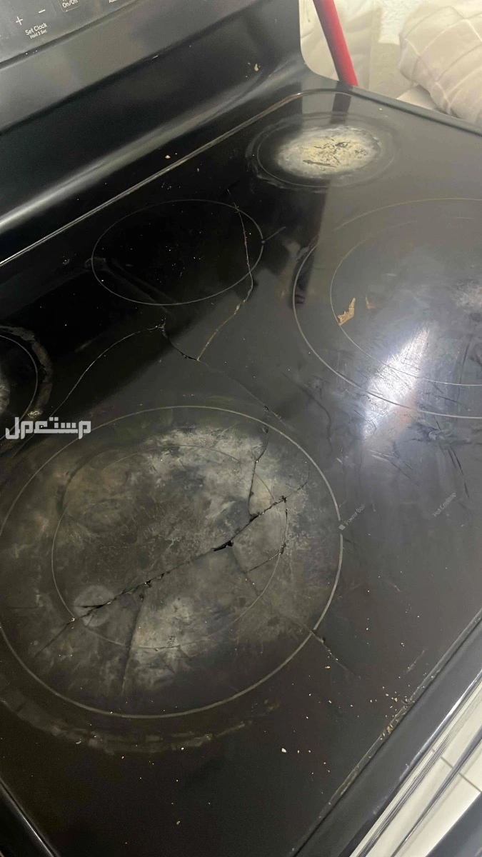 فرن كهربائي مستعمل فيه كسر فوق جهة العيون ويشتغل. قيمته الشرائيه اربع الاف الفرن يشتغل ملحقاته كامله