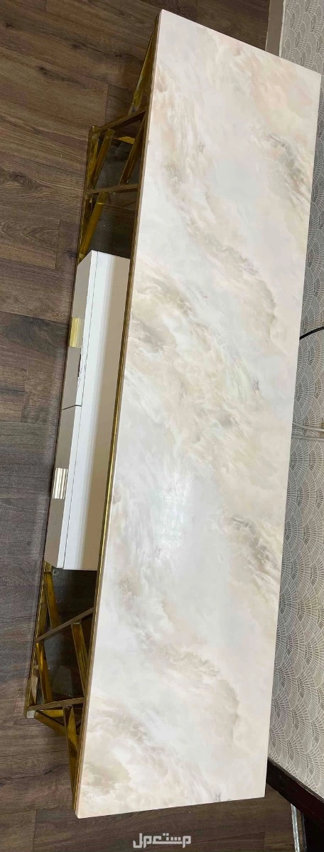 طاولة تلفزيون رخام مع زيج ذهبي شبه جديده حجم الطاوله كبير 160 سم تكفي لتلفزيون 65 بوصه وممكن أكبر الرجاء التواصل عبر رسائل الخاص