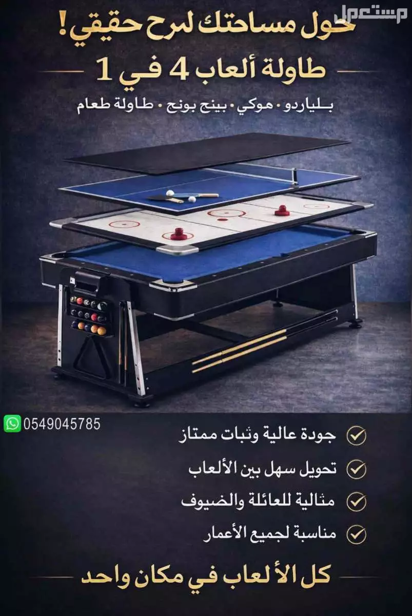 طاولة 4 في 1! بلياردو + هوكي + بينج بونج + طاولة طعام.
