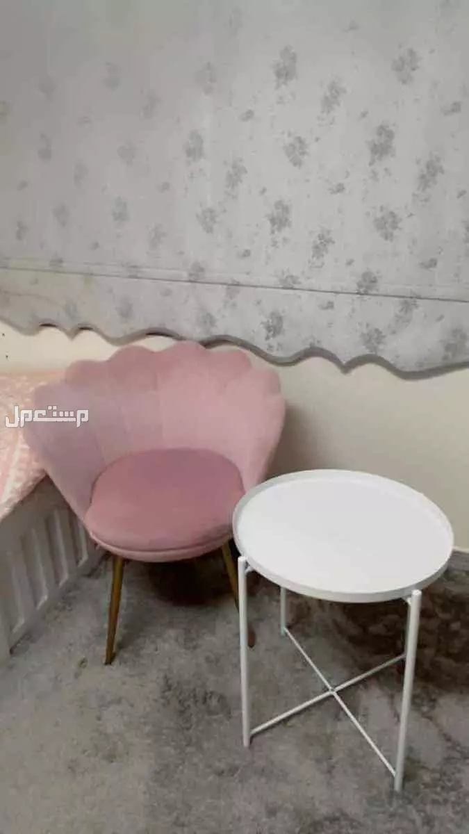 للبيع في حفر الباطن كرسي من راحتي بلون الوردي وطاولة من الركن السويدي بلون الابيض بسعر 200 في حفر الباطن