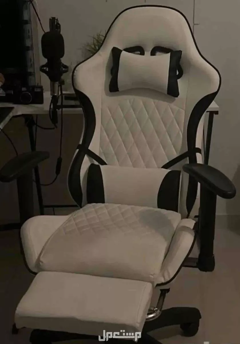 كرسي مكتب ألعاب مريح بتصميم سباقات - كرسي جلدي متكئ مزود بمسند للقدمين، ومساند للذراعين قابلة للتعديل، وظهر مرتفع، ومسند للرأس، ودعم أسفل الظهر