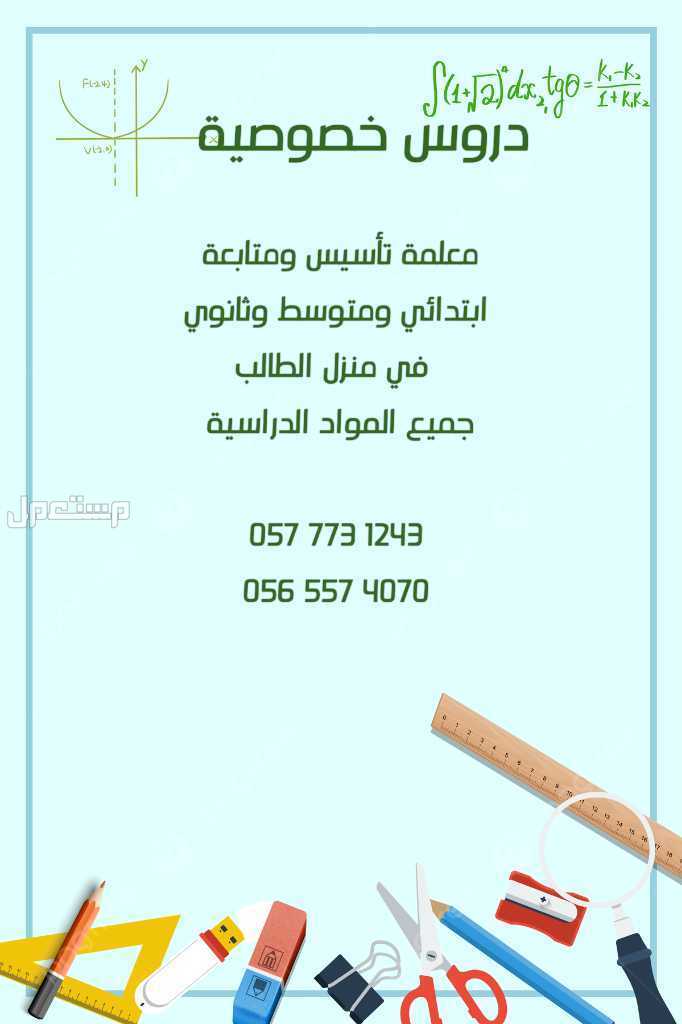 معلمة تأسيس ومتابعة ابتدائي ومتوسط وثانوي في منزل الطالب جميع المواد الدراسية