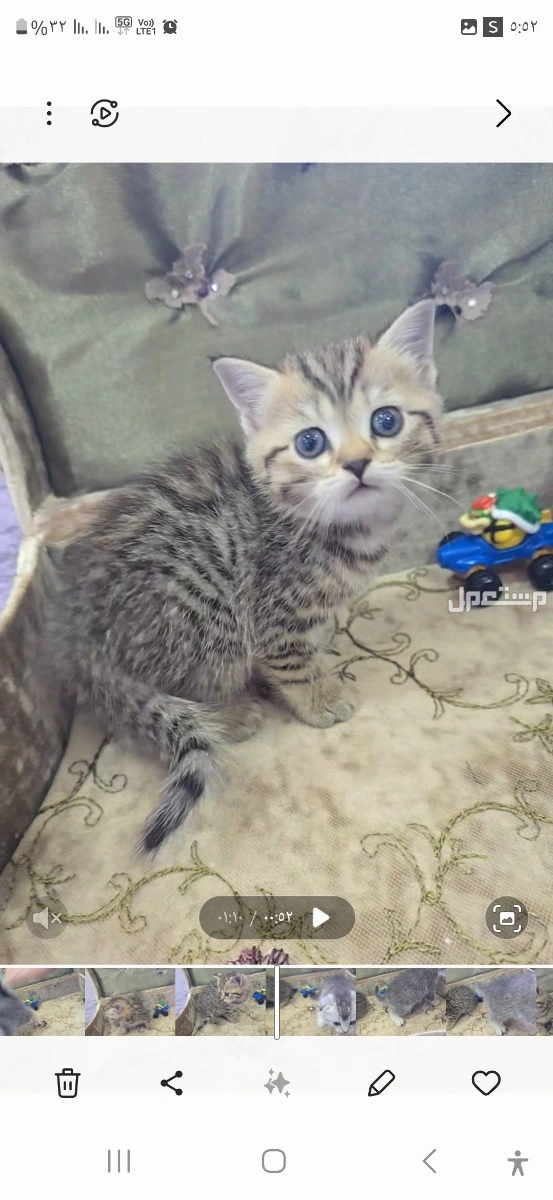 مبارك عليكم الشهر متوفر لدينا كتن سكوتش عمرها 37 يوم للبيع الموقع جده التايقر انثى الاهالي بيور الاب قولد تربل فولد الام بلو ستريت السعر لايشمل التوصيل والبيع بدون مسلتزمات للقطه