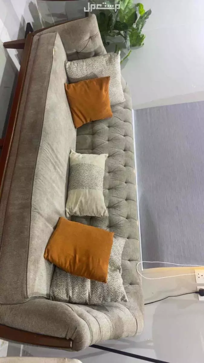 كنب ثلاث قطع اثنين بيج والثالث رمادي ومعها خداديات لون اورنج ست قطع مرفق صوره الكنب بسعر 500 ريال وقابل للتفاوض مرفق بالصور نظيفة