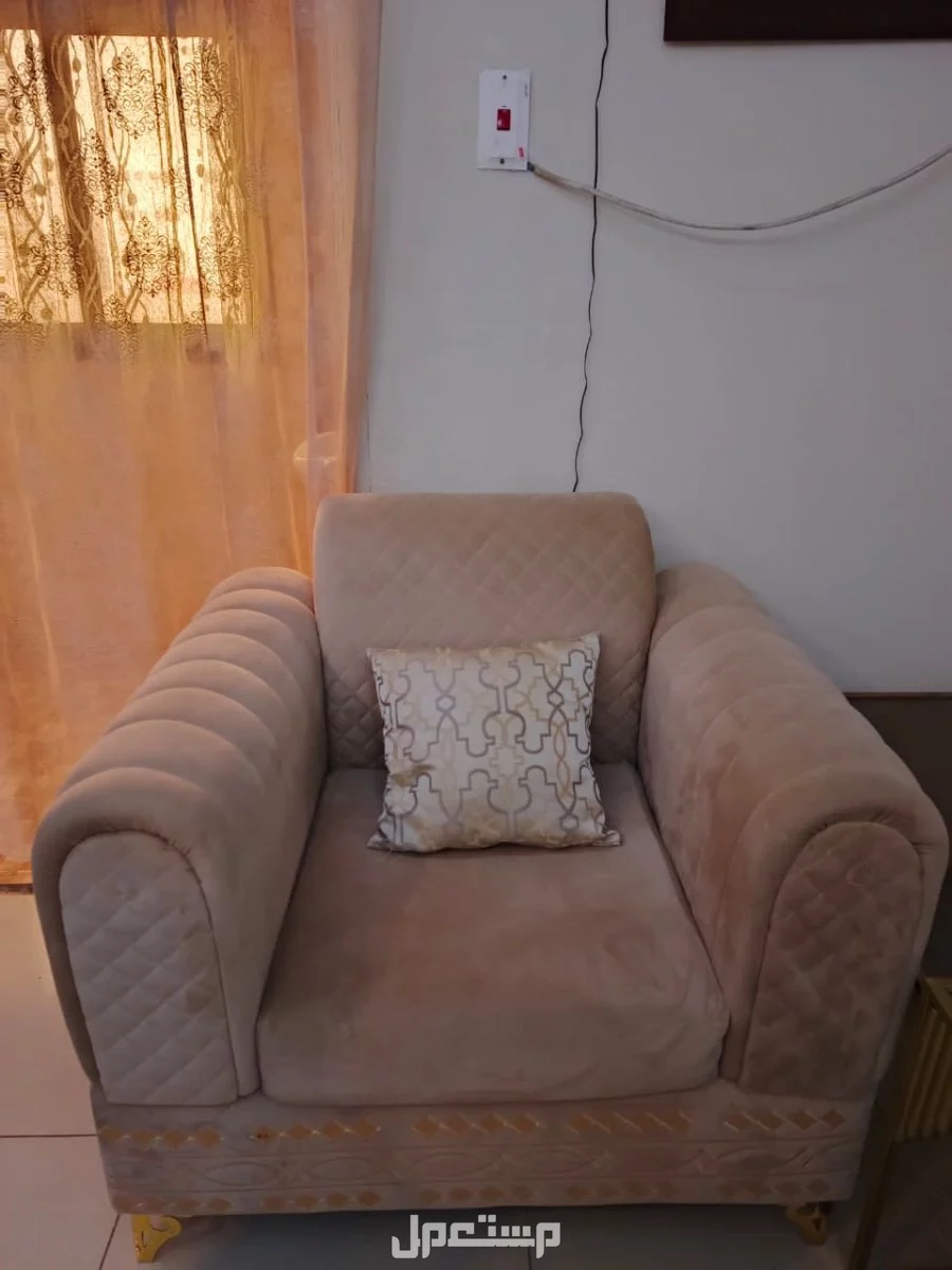 كنبه ثلاثية وكنبه ثنائيه وكنبتين مفرده مع الخداديات بسعر 400 ريال ويوجد ايضا طاولات طاوله كبيره واربع خدمه ب100 للتواصل 0553854394