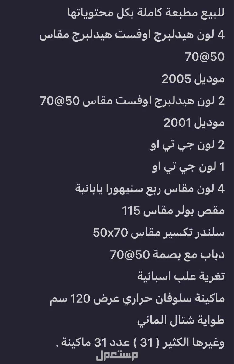 للبيع مطبعة كاملة عدد 31 ماكينه