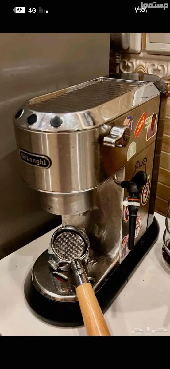 بيع الة قهوة ديلونجي ديدكا بجميع ملحقاتها بخمسية ريال في جدة حي المروة مكبس موزع مفكك تكتلات حديدة تثبت القهوة