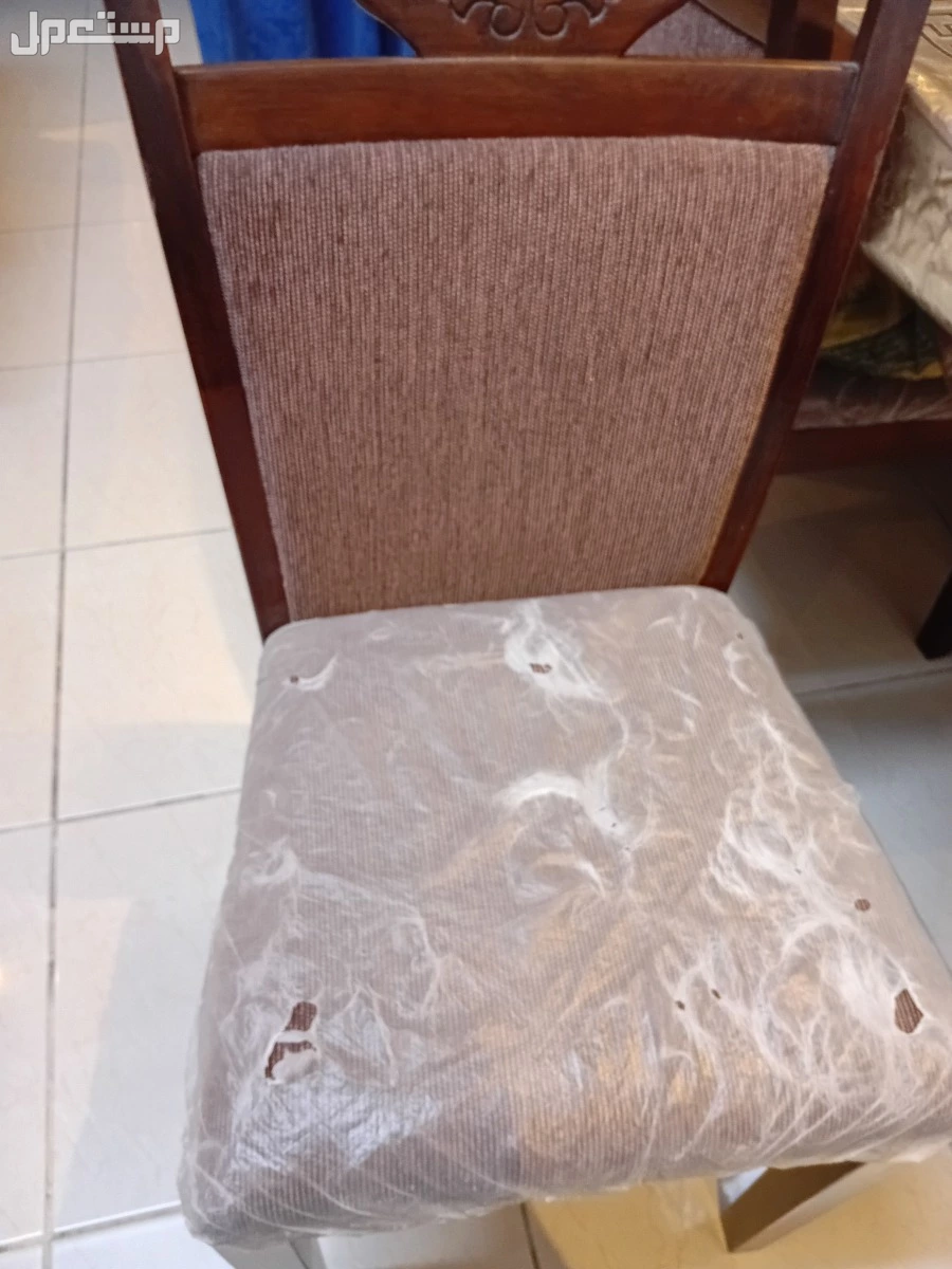 طاولة طعام جميلة. وشيك متوسطة الحجم خشبية و معها 6 كراسي جديدة ونظيفة لم تستعمل تقريبا بنية اللون و الكراسي بها قطيفة بنية للبيع في جدة