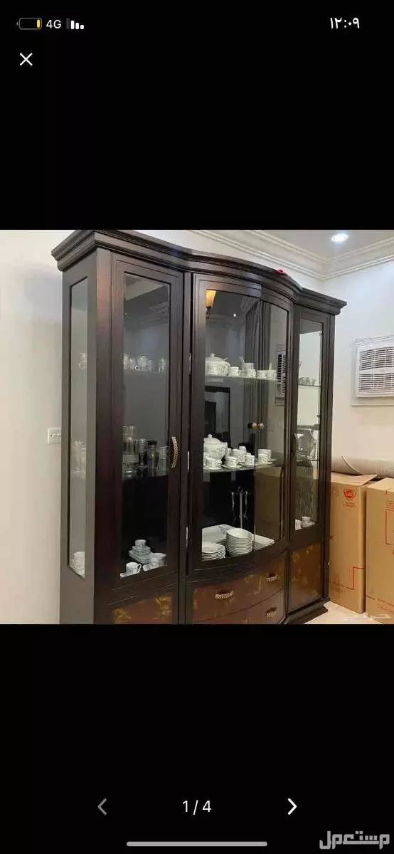 طاولة طعام كاملة 8 كراسي وبوفية ودولاب نظيفة جداً استعمال خفيف مره .............................. لتواصل على الرقم الموجود