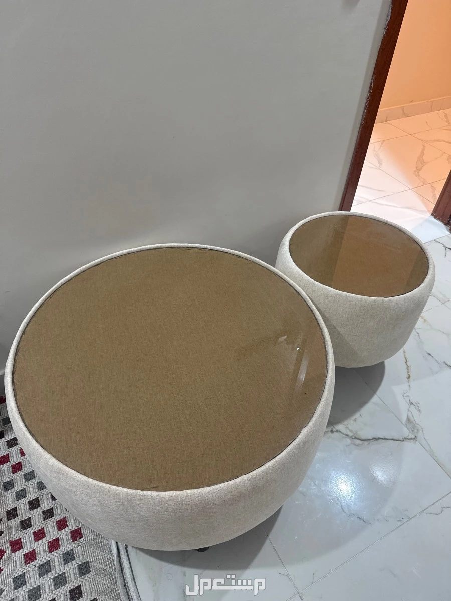 طاوله كبيره مع 1خدمه جديده وغير مستعملهه مافيها عيوب للبيع ما احتاجها خفيفه شوي وفيها قزاز بني لونها بيج ولها قواعد سميكه لون بني