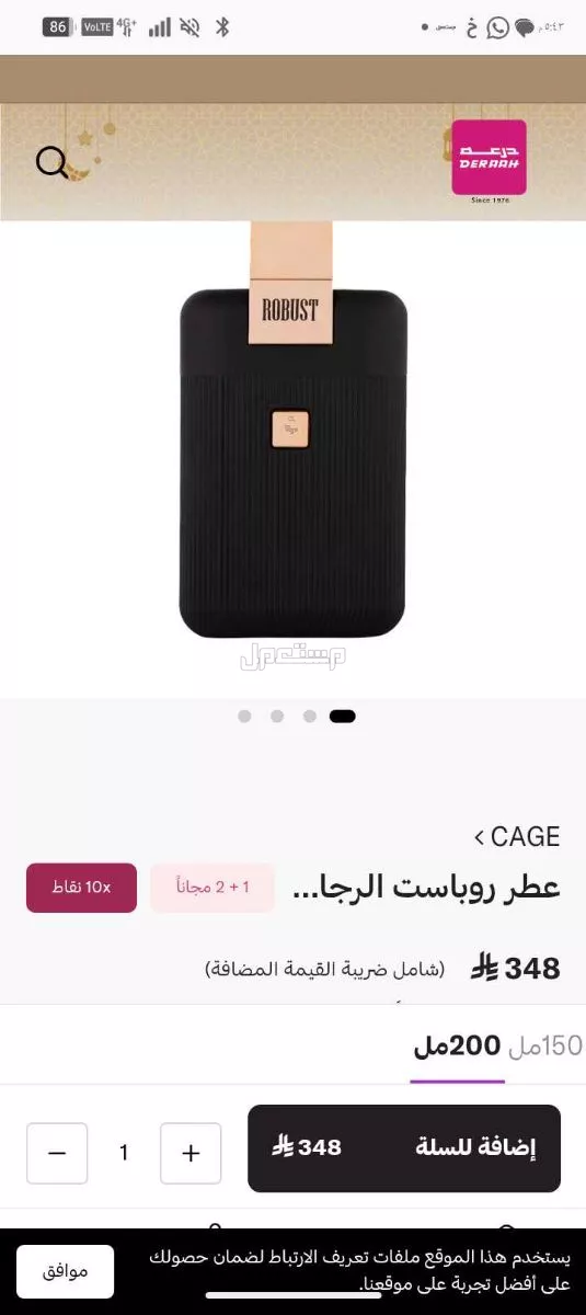 عطر روباست 150 مل من ( درعة )شبه فل عطر مميز والاكثر مبيعا ثبات وفوحان قوي ورائحة مميزة العطر رجالي.. قيمته بالشركة 348 بعد الخصم موضح صورة للسعر من الموقع الرسمي لشركة درعه..