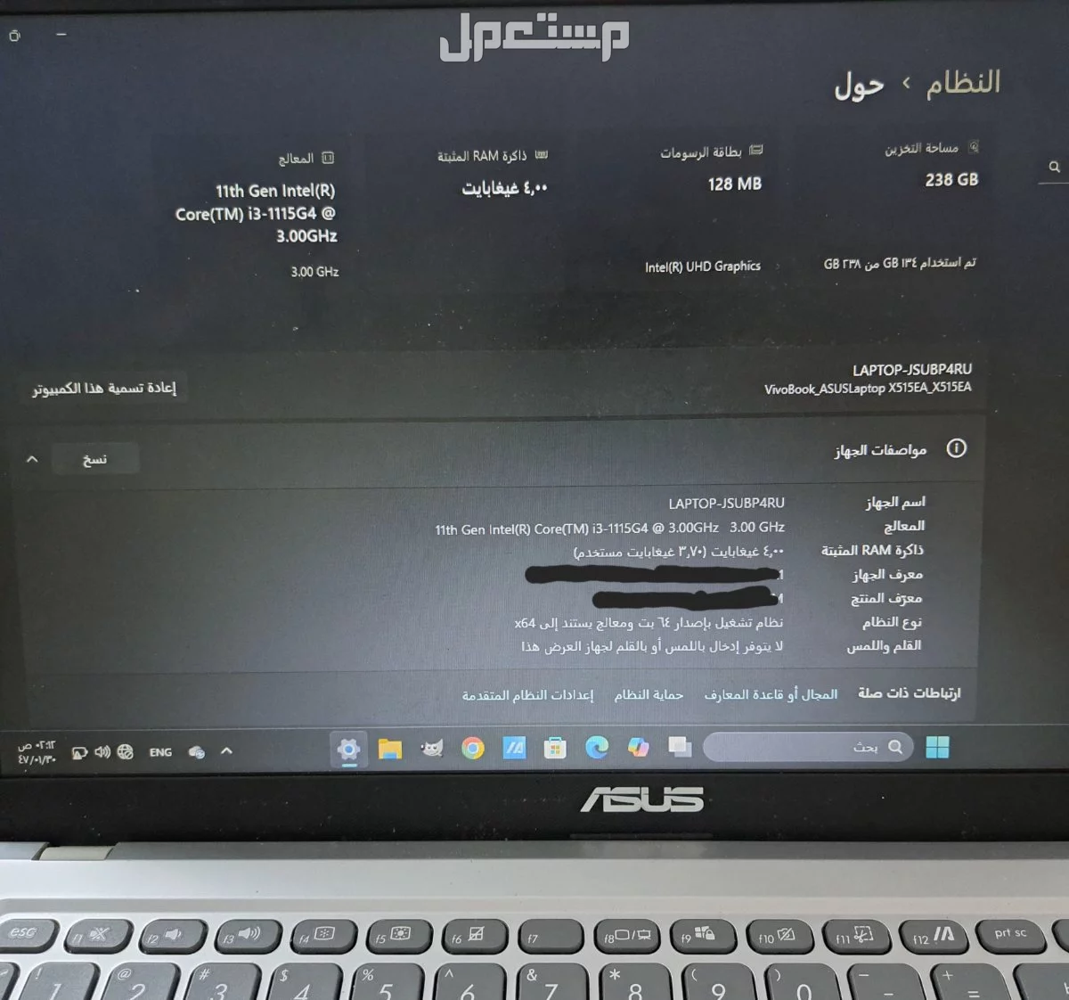 للبيع لابتوب ASUS X515 – عملي ونظيف، مناسب للدراسة أو الشغل