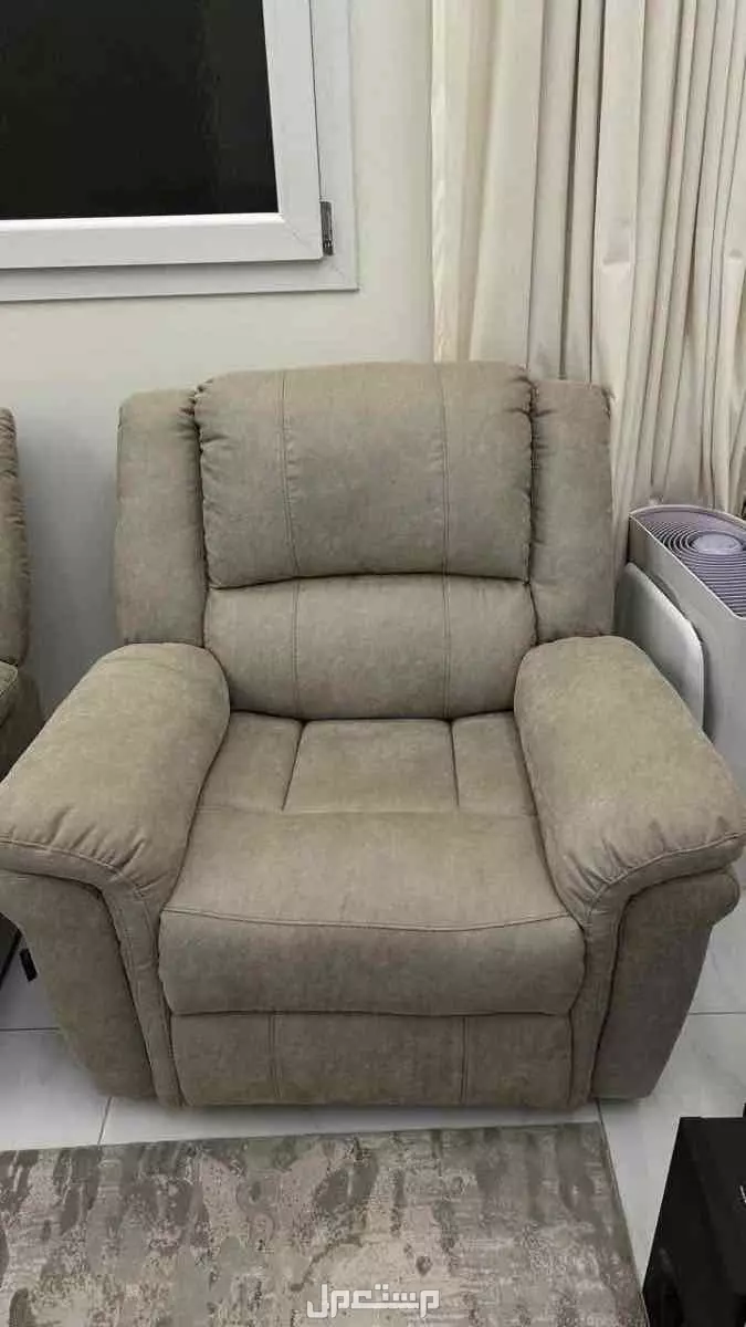 كنب استرخاء مريح مستعمل استعمال نظيف اللون رمادي القماش قابل للمسح ظهر الكنبة قابل للرجوع للخلف بحيث يكون الشخص شبه مستلقي يوجد 6 كنبات منفصله حجم الكنبة كبير مريح غير ضيق الكنبة هزازة وتدور دورة كاملة