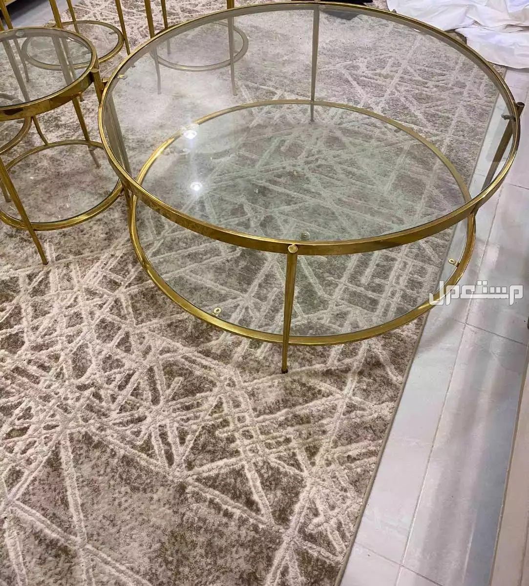 طاولة كنب دائره كبيرة دورين اطراف ستيل ولامع ضد الخدش يوجد معها 4 طاولات خدمه دورين نظيفه وستيل ضد الخدش