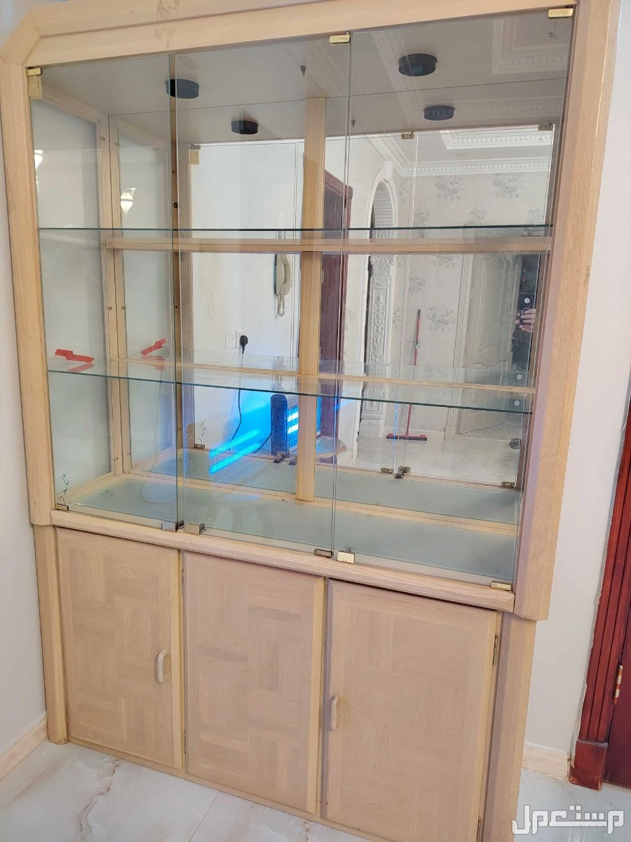 طاوله ممكن تتكبر وتتصغر مكونه من 12 كرسي خشب اصلي ودولاب صيني قزاز من فوق وخشب من تحت لوضع كاسات وصحون الضيوف