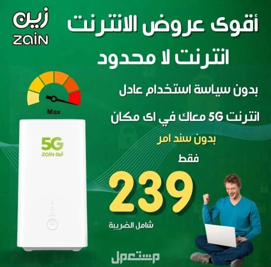 إنترنت زين 5G  في الرياض بسعر 239 ريال سعودي