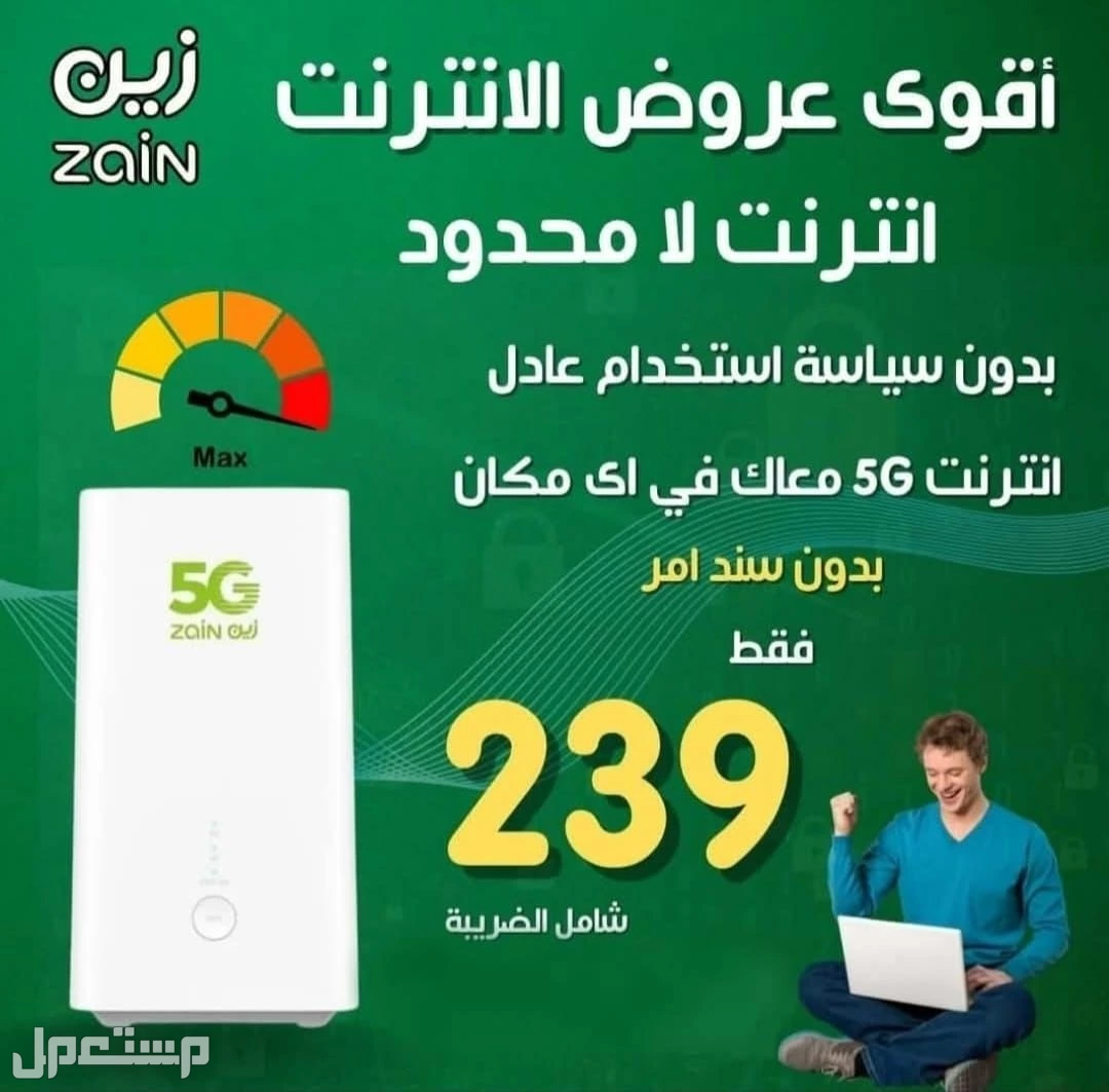 🔥 أقوى عروض زين 5G في الرياض 🔥 سرعة 200 ميجا – بدون أسلاك – مودم مجاني ✔️ تركيب مجاني لأي مكان داخل الرياض ✔️ تجربة 48 ساعة للتأكد من قوة الشبكة ✔️ مناسب للبيت – الألعاب – العمل عن بعد السعر: 239 ريال فقط 📞 للتواصل: 0562474284 `