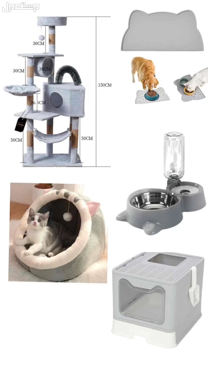 أعرض للبيع مجموعة مستلزمات قطط بحالة ممتازة، الاستخدام جدًا قليل ونظيفة وما فيها أي ملاحظات: