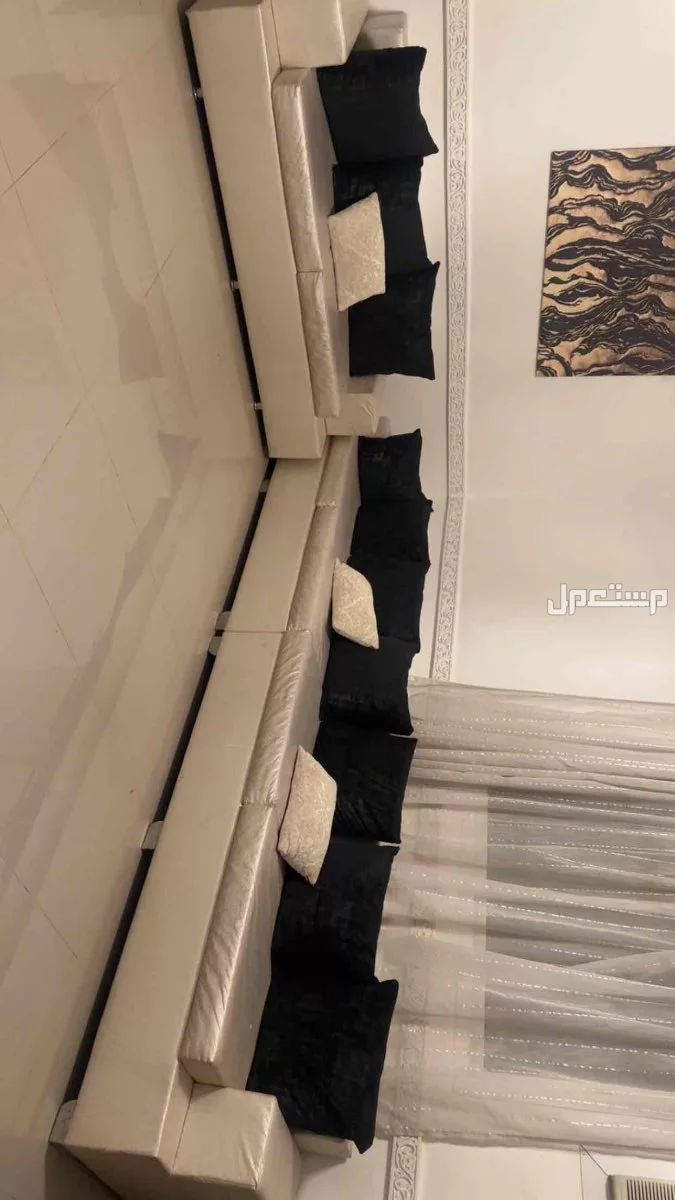3 كنبات بيضه مع ساجده وطاوله مخدات اسود والسجاده اسود وذهبي كنبه طويله واثنين وسط والسعر قابل للتفاوض.............