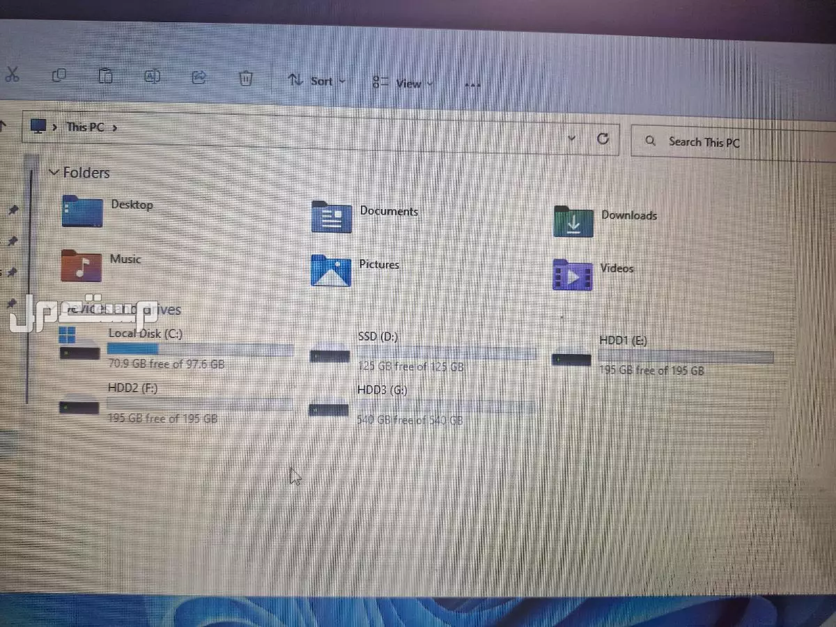 * التخزين: تم تحسين الجهاز بإضافة SSD 220 جيجابايت للنظام لضمان السرعة، بالإضافة إلى هاردسك خارجي (مقسم) بمساحة إجمالية تقارب 1 تيرابايت لتخزين الملفات.