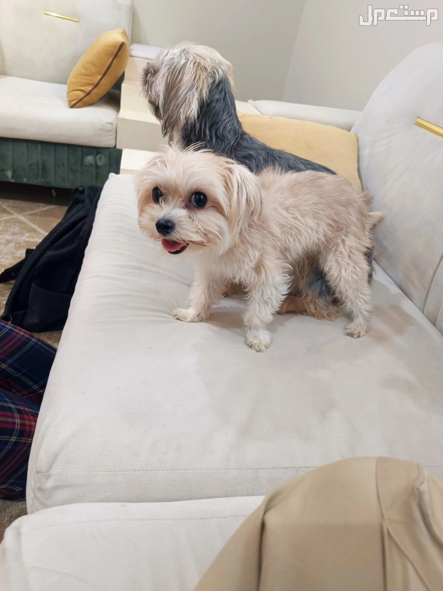 كلاب اليفه للبيع على السوم سليمات ولعوبه مع جميع اغراضها الصغير عمره 4 اشهر حسب كلام الي اهدها على العيال