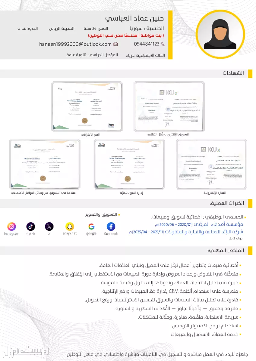 السلام عليكم ابحث عن وظيفة بدوام كامل في الرياض انا بنت مواطنة سعودية للتواصل عبر البريد الالكتروني haneen19992000@outlook.com او عبر الوتساب او الاتصال 0544841123