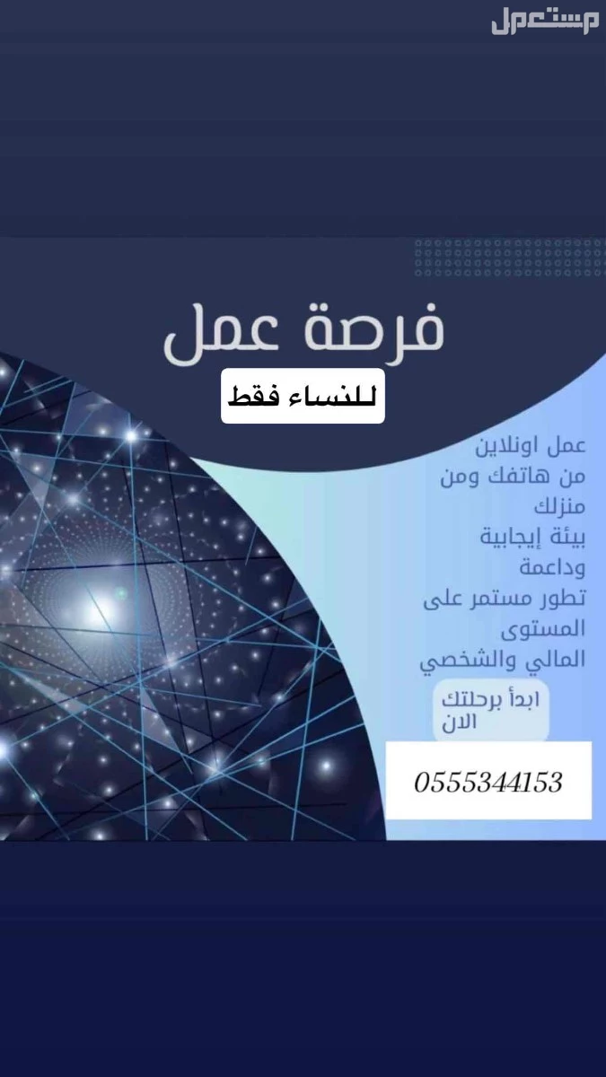 مطلوب موظفات تسويق عن بعد تعلن شركة استثمارية في الرياض حي البيضاء عن أحتاجها للموظفات بالتسويق الالكتروني للسيدات الطموحات الم بديعات المميزات حوافز دخل متزايد يصل فوق 20000 ريال + عمولات العمل فقط للنساء داخل الخليج للاستفسار التواصل
