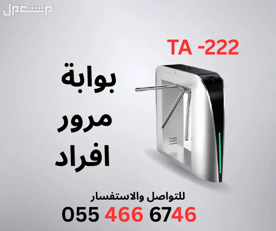 بوابة مرور أفراد ترابيد تعطيك تحكم كامل وأمان عالي، بتصميم أنيق وجودة تتحمل الشغل المتواصل.