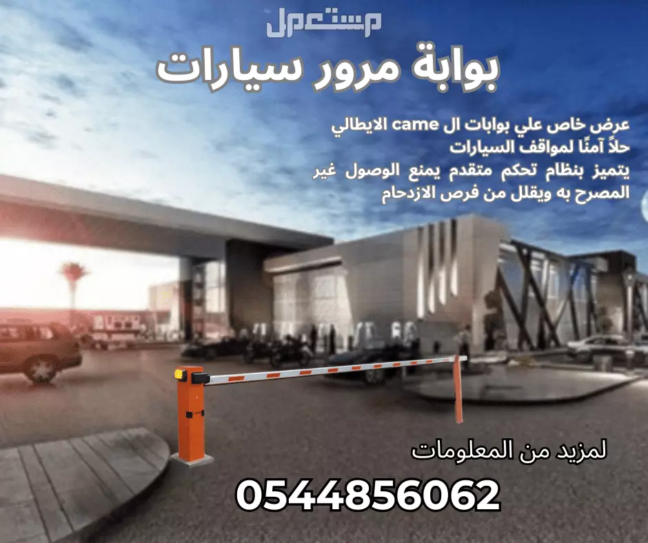 بوابة دخول سيارات، نظام تحكم دخول وخروج، barrier gate، نظام مواقف ذكي، بوابة للسيارات، CAME، تنظيم المرور، Parking Access Solution, Access Control Gate, Smart Parking System.