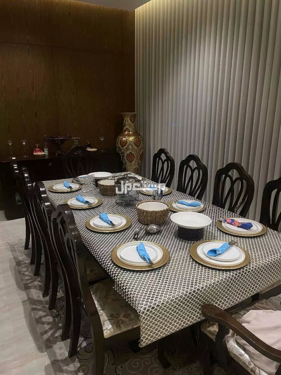 طاولة طعام تسع ل 10 اشخاص مع 10كراسي خشب بالكامل مع طاولة تخزين ومرايا