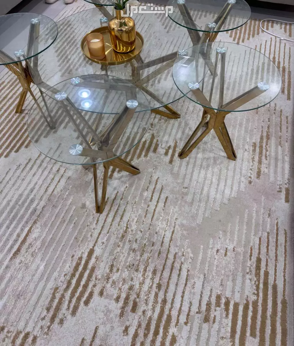 للبيع طاولة مع 5 طاولات خدمة اللون ذهبي لايوجد فيها اي شي لاكسر ولا شي ستيل البيع 300 الفرشة 2 في 3 البيع 100
