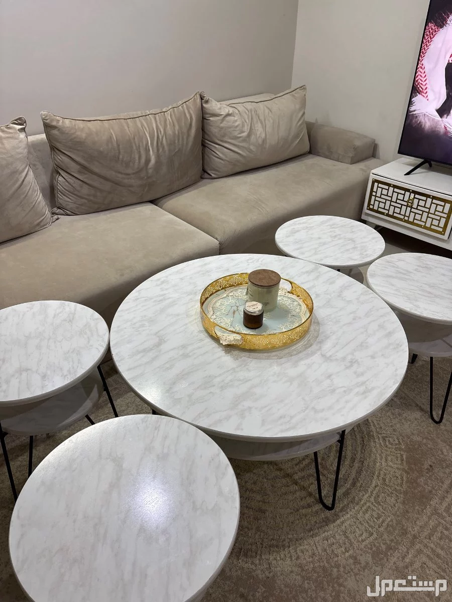 للبيع طاوله رخام مع 4 طاولات خدمه شبه جديده ثقيله وجميله جدا في الرياض ب 200 ريال لونها اسود وابيض حجمها جدا مناسب
