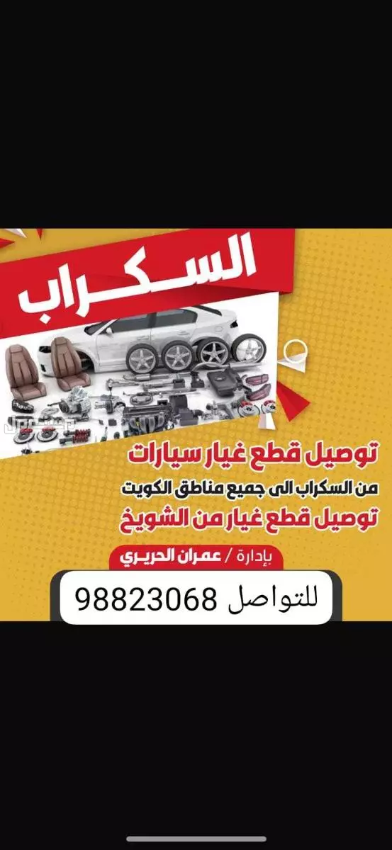 توصيل قطع غيار السيارات المستعملة من السكراب مكايين قيرات دعاميات ليتات صطبات رنقات اكسات فرش السيارات المستعملة ابواب طرمبه بريك طرمبه سكان طرمبه بانزين خدمة توصيل جميع مناطق الكويت للتواصل 98823068