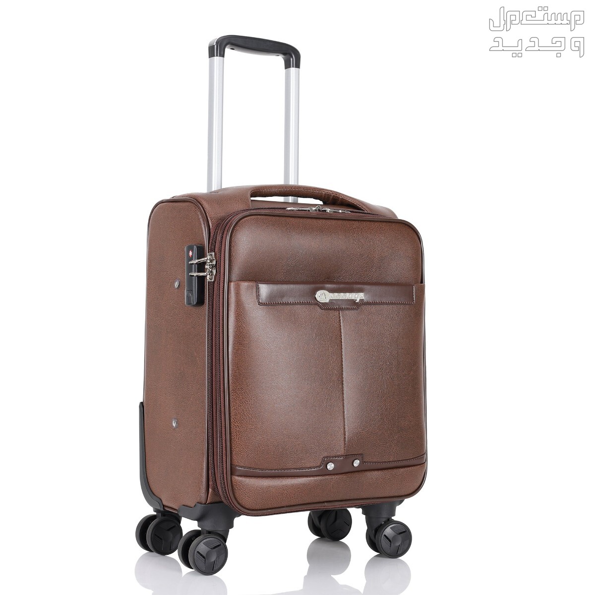 تأتي تلك الحقيبة من ماركة اسودا أيضاً ولكنها تمتلك تصميم راقي أكثر وأنيق، تم صنعها من الجلد في حالة إذا كنت تفضل هذا النوع عن الحقائب المصنوعة من البولي بروبيلين فإن هذا الخيار يعتبر الأمثل لك، ويتميز الجلد المستخدم في صنعها بلمعة مميزة وتمتلك عدة جيوب حتى تتمكن من توزيع أغراضك بطريقة منظمة،  بالإضافة إلى أنها تأتي بحجم متوسط بالتالي فهي مناسبة أكثر للرحلات القصيرة أو عطلة نهاية الأسبوع التي لا تحتاج إلى حمل الكثير من الأغراض بداخلها،وتأتي باللون البني الفاتح وهو من الألوان المختلفة والمميزة، وتأتي مع 4 كفرات دبل وقفل محكم الإغلاق، وعجلات تدور في جميع الاتجاهات المختلفة.[1]