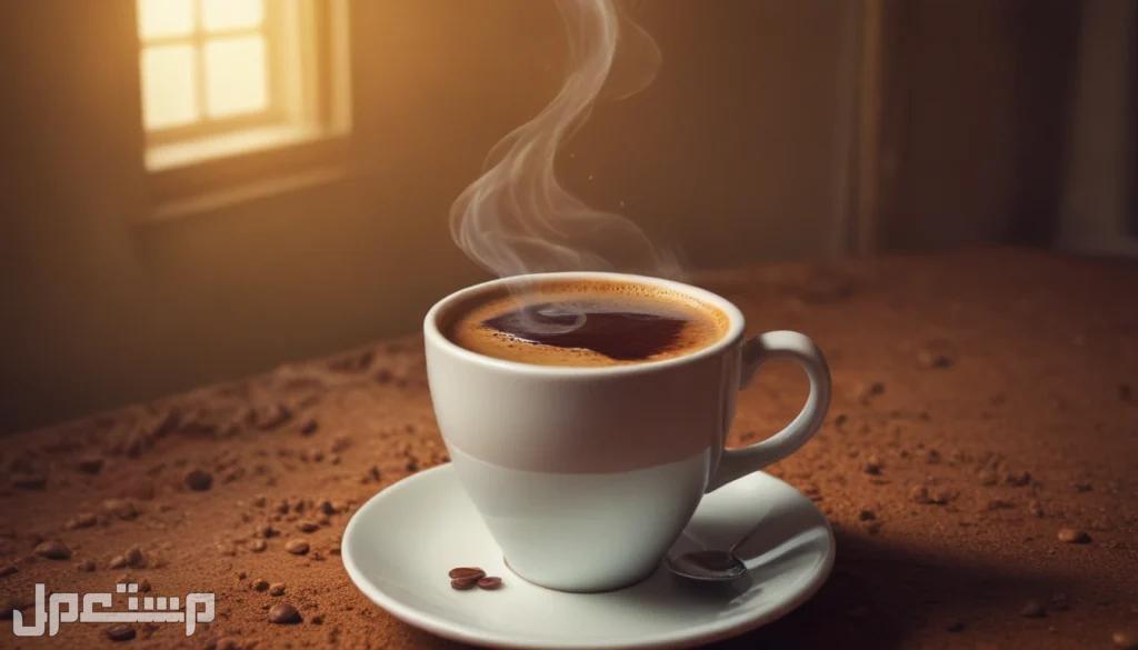 فنجان قهوة يتطاير منه الدخان